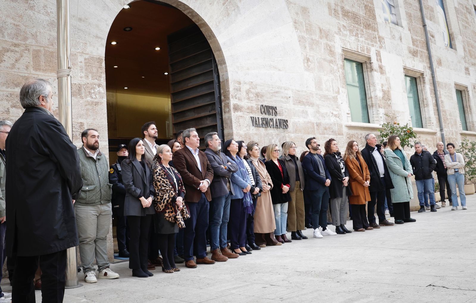 S'ha guardat un minut de silenci a les portes de les Corts Valencianes, en memòria de les víctimes mortals del terrible accident ferroviari en Adamuz, Córdoba.