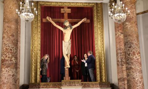 La presidenta de les Corts Valencianes, Llanos Massó, ha acudit a l'exposició ‘El Crist de València. 775 anys d'història i devoció’, en el Palau de Colomina.