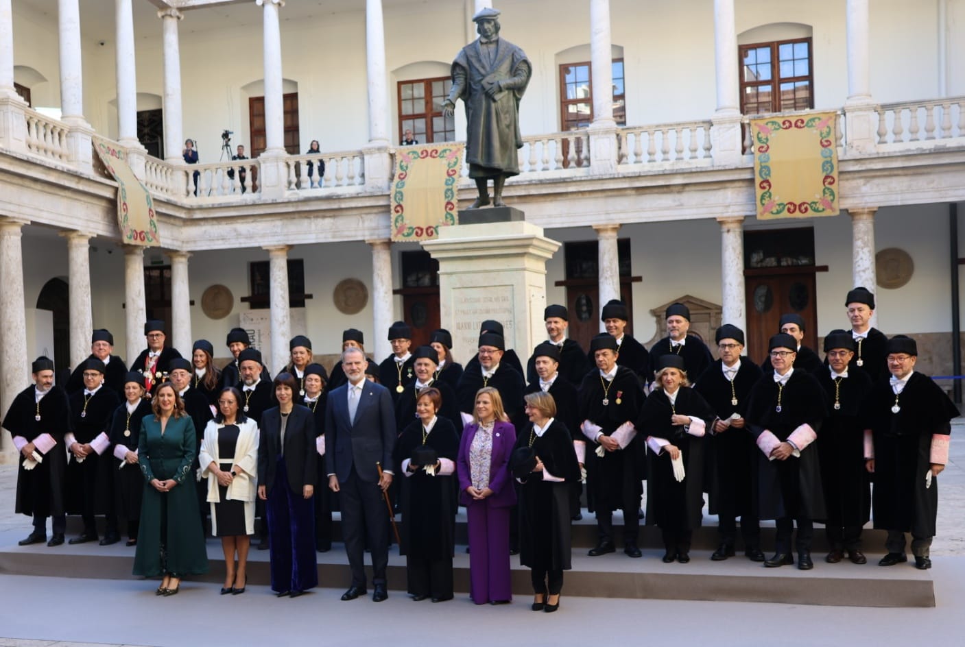 La presidente de les Corts Valencianes, Llanos Massó, ha asistido al solemne Acto de Apertura del curso 2025-2026 de las universidades españolas, presidido por el Rey Felipe VI, que se ha celebrado en el Paraninfo de la Universitat de València en el edificio histórico de La Nau.
