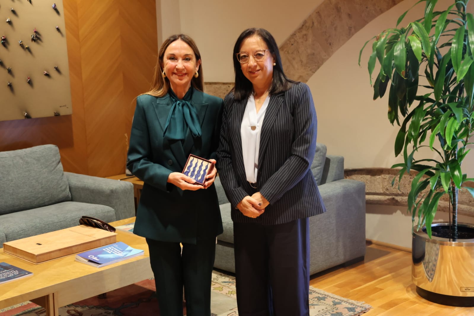 La presidenta de les Corts Valencianes, Llanos Massó, ha recibido en su despacho del parlamento valenciano a la Honorable Clavariesa de las Fiestas Vicentinas 2026, Vicenta Evangelina Escudero García
